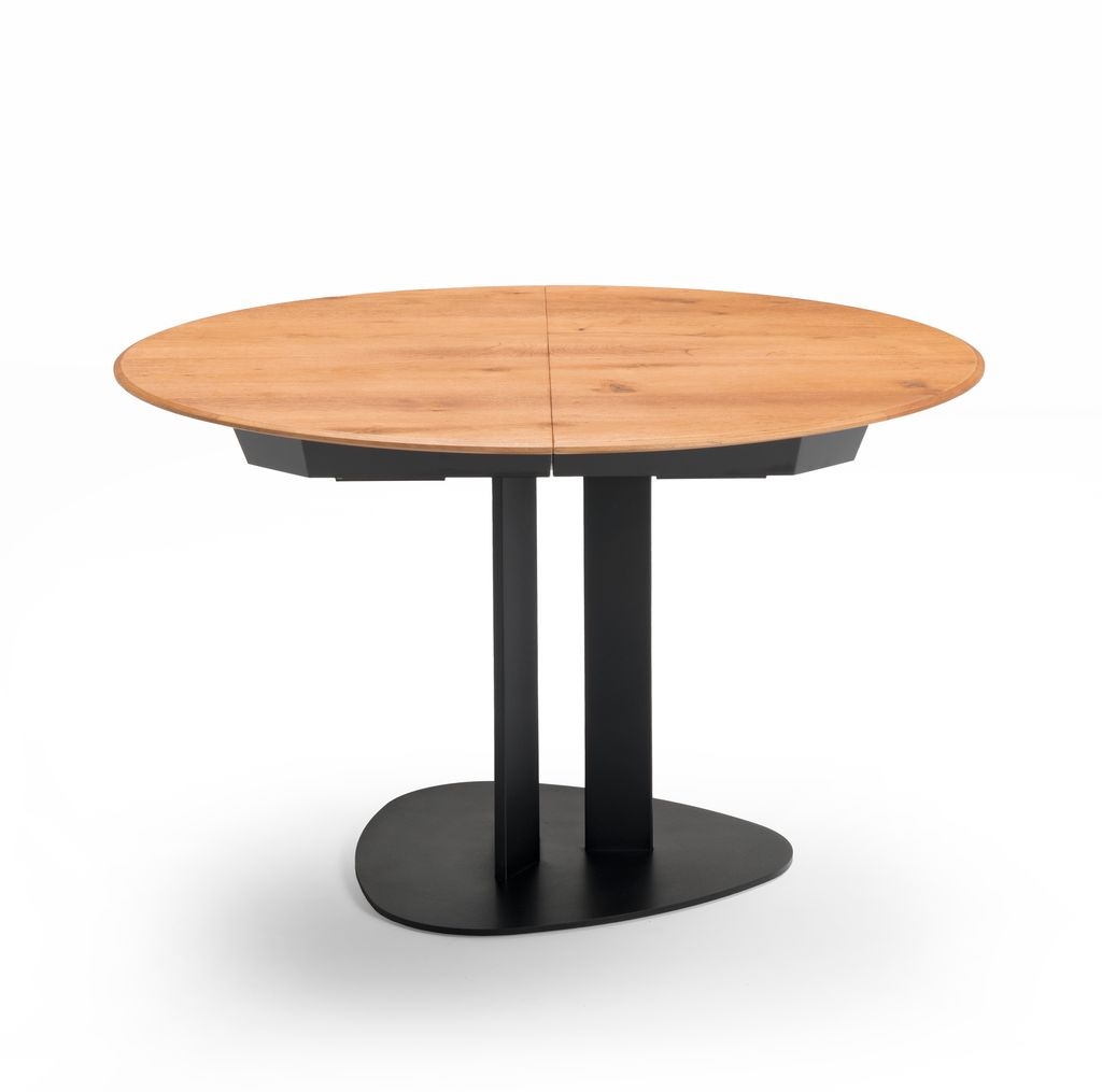 Tops in 20 mm thick oak with brushed surface or in 12 mm thick glass coupled ceramic. Base in powder-coated or oxidized steel with acrylic finish.