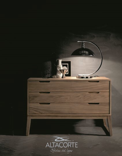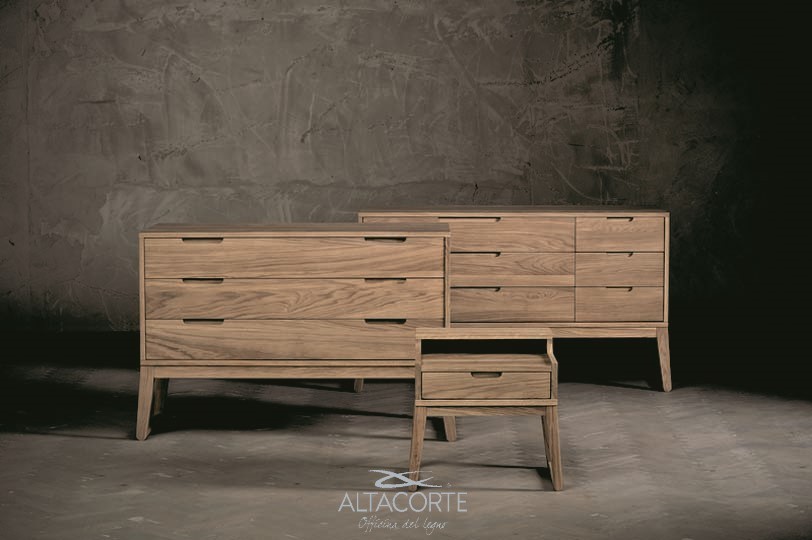 A chest of drawers with a sophisticated design, never trivial, entirely realized in solid brushed oak wood, completed by the book by our skilled artisans. The details make the difference.