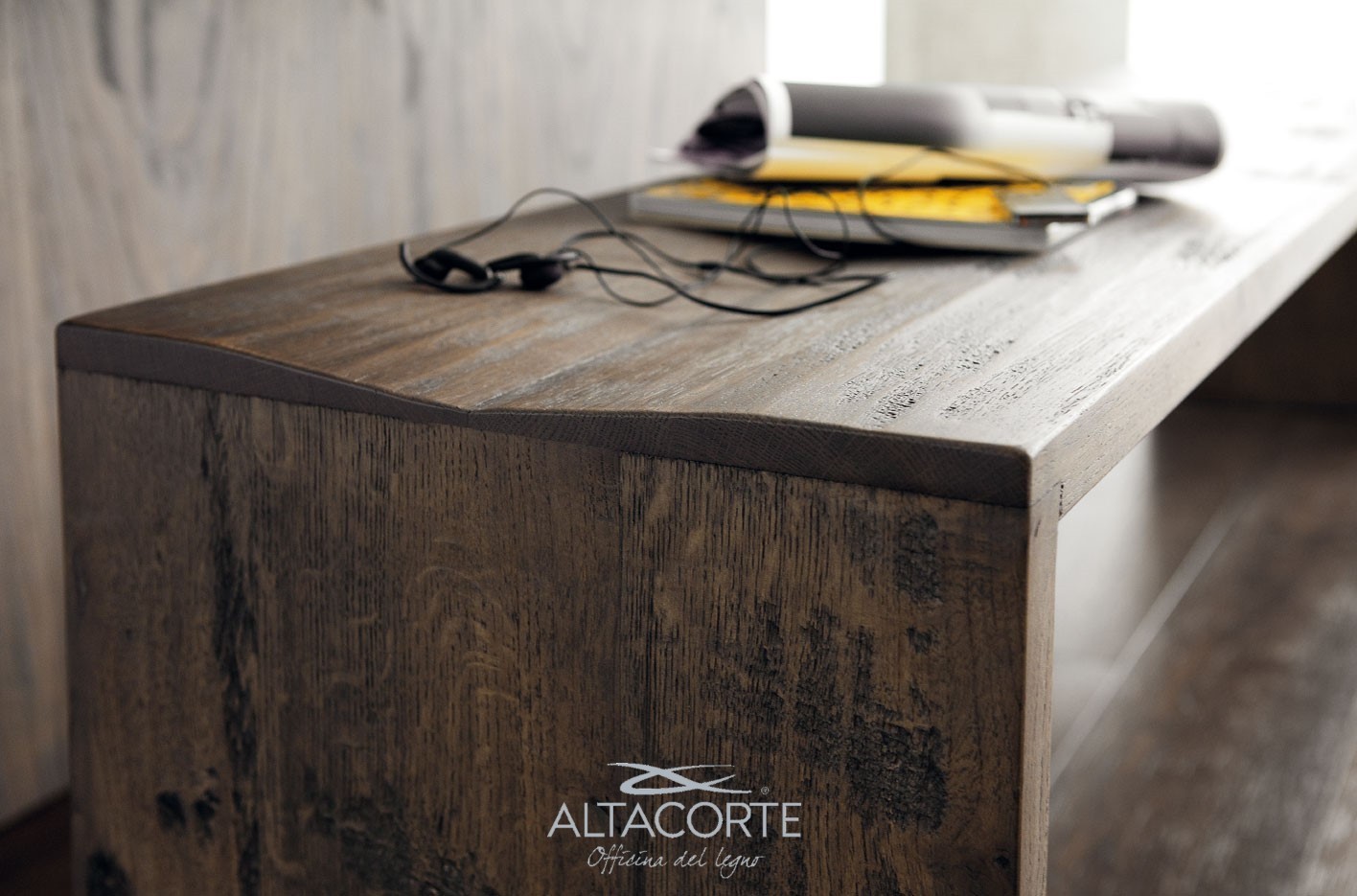 A real design object entirely realized in solid durmast or walnut wood with items machined from a solid.