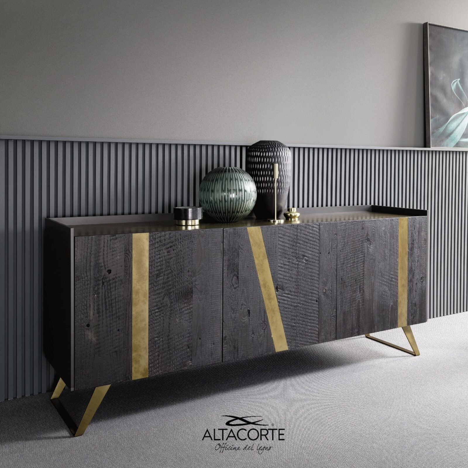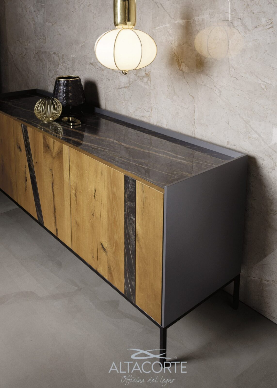 A modern sideboard of strong impact for your guests. Customizable with more than 500 different combinations between cabinets, doors, legs, inserts and tops: in this way each sideboard will be different from all the others. How would you make it?