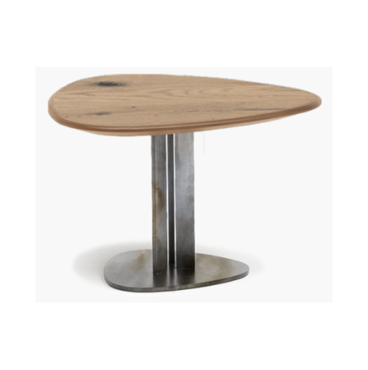 Tops in 30 mm thick solid oak with brushed surface or 35 mm thick tops made of ceramic glued onto a black MDF base. Water-based vinyl glues, two-component acrylic paints. Base in powder-coated or oxidized steel with acrylic finish.