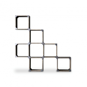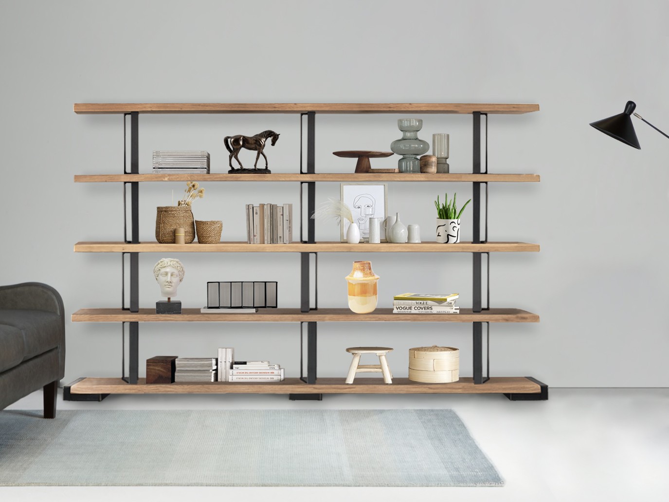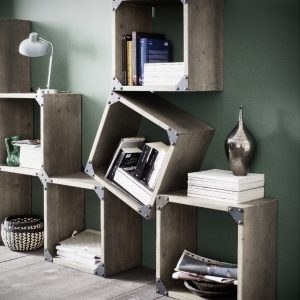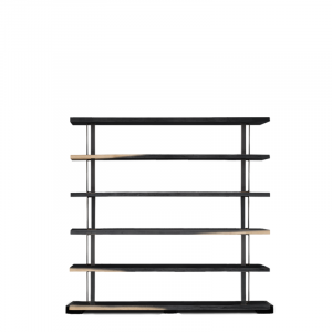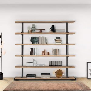 Fixed scheme bookcase in solid durmast wood with uneven edges and structural iron clamps with an industrial chic design. Can’t you find the right combination for you? At our authorized sellers you will be able to personalize it according to your needs.