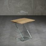 60-mm thick solid oak or bonded solid wood top. 19-mm thick, extralight, hot-curved glass base. Non-tempered. Water based vinyl adhesives or two-component acryl coat.