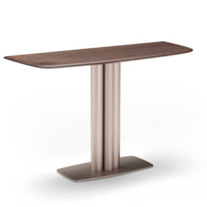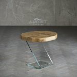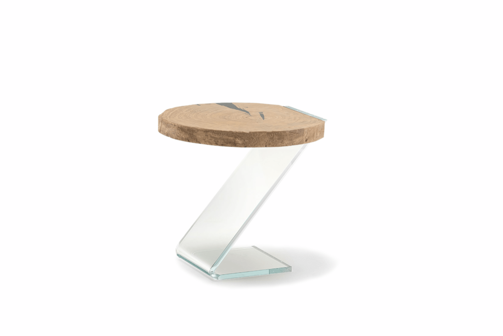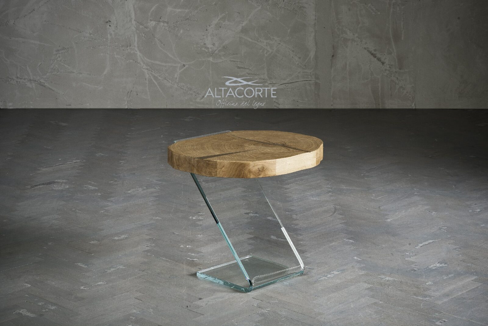 60-mm thick solid oak wood top. 19-mm thick, extralight, hot-curved glass base. Non-tempered. Water based vinyl adhesives or two-component acryl coat.