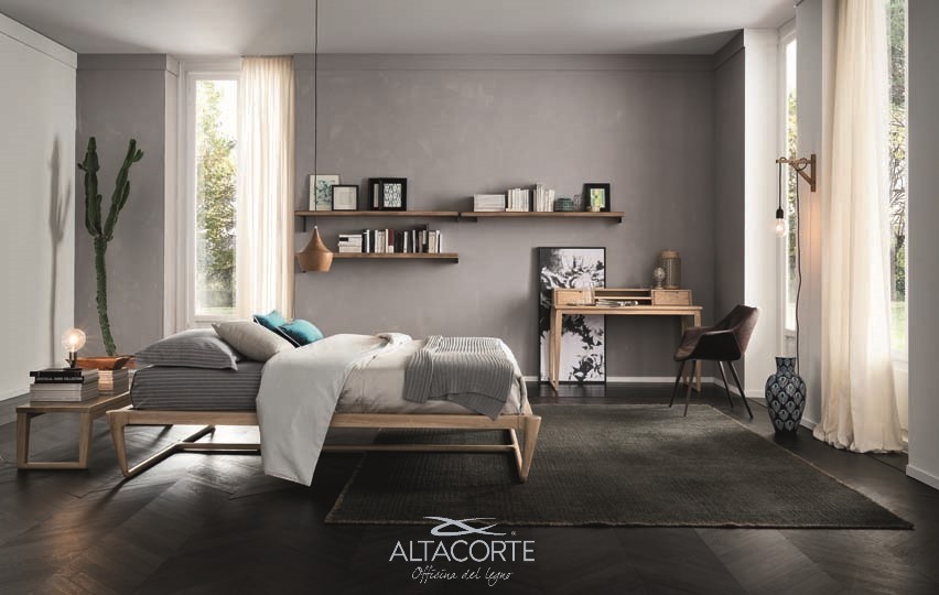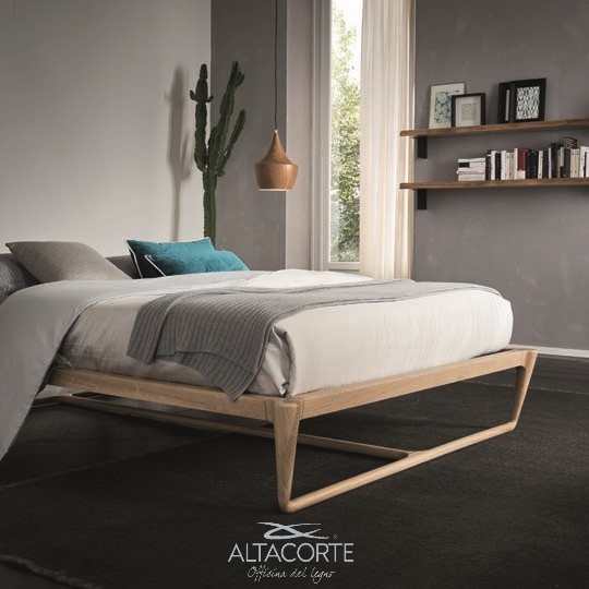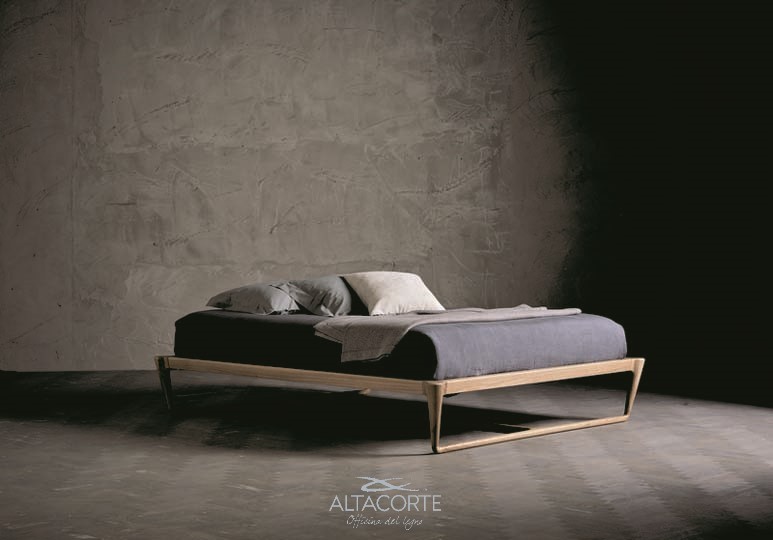 A bed with a simple and sinuous lines, realized with items in oak wood machined from a solid.