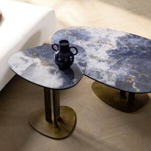 A charming coffee table with a futuristic design. Its lines have been studied to suit perfectly in refined room, with a strong artistic vocation. We recommend combining it with our table London.