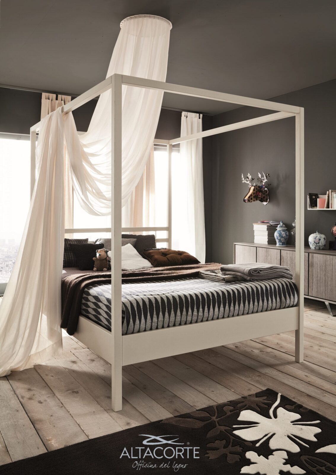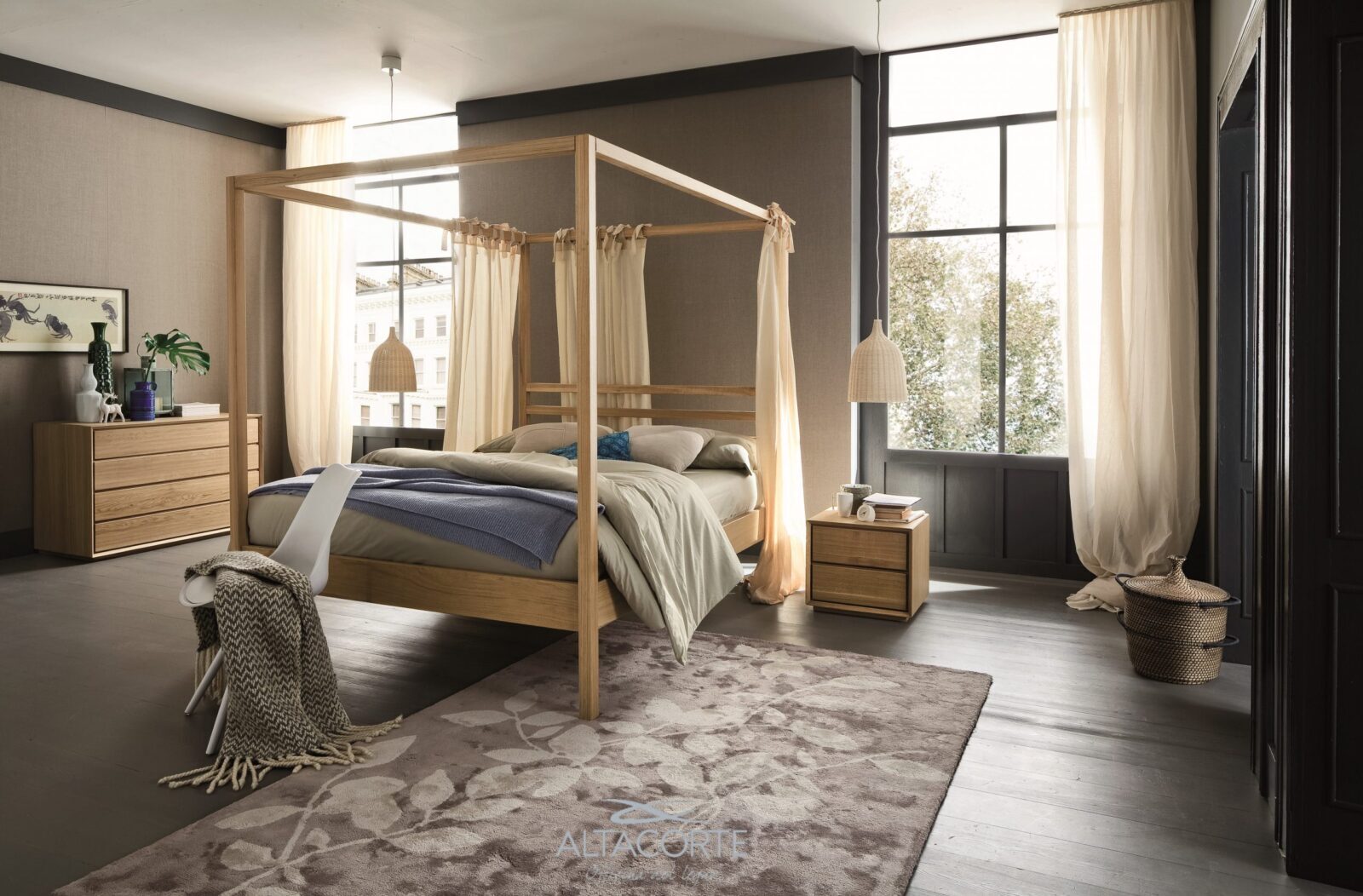 A classic canopy bed with a timeless taste for a romantic atmosphere in your bedroom.