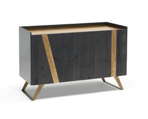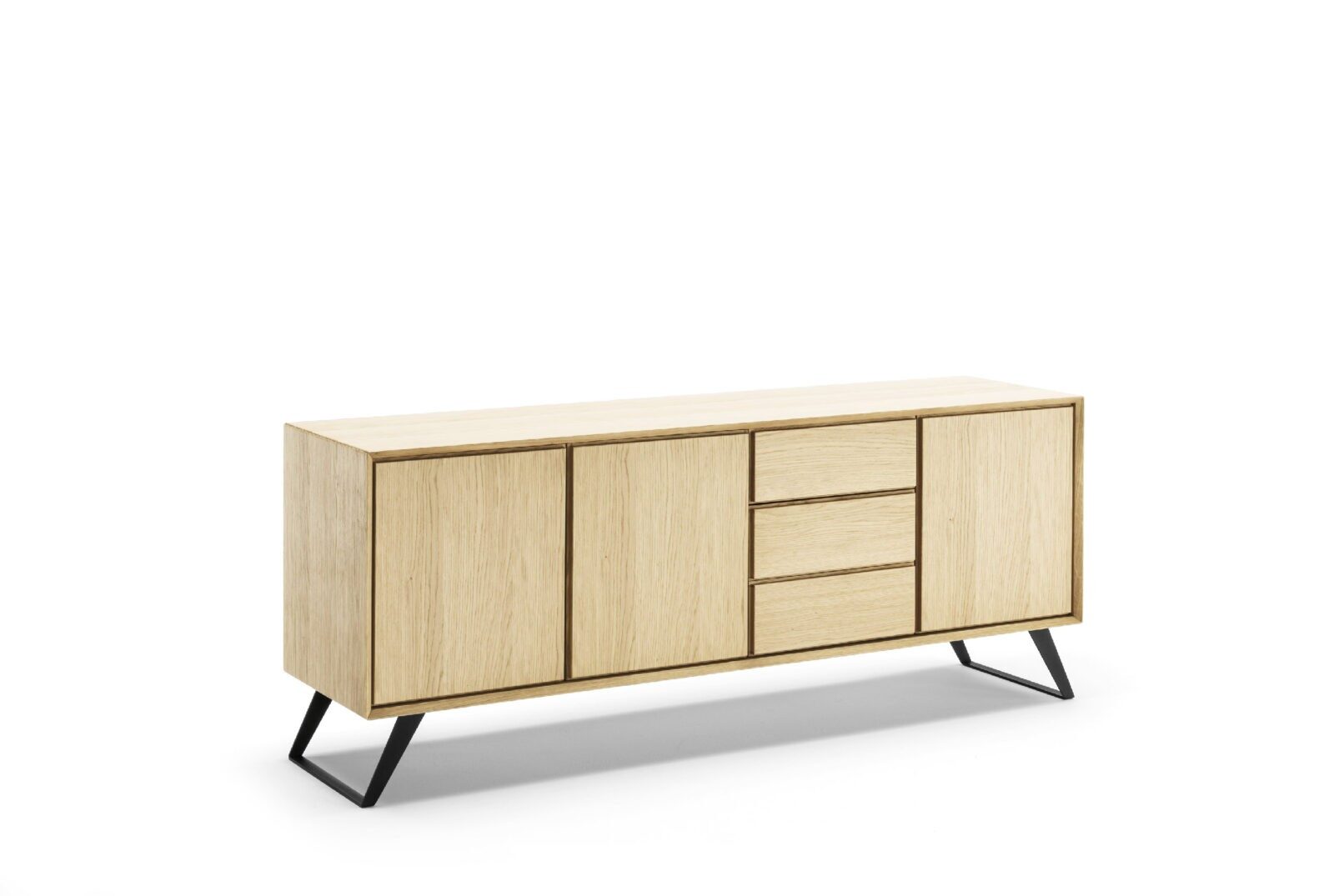 Sideboard entirely realized in durmast or walnut wood with brushed external surface. Vinyl adhesives and water-based ureic resins comply with the UNI-EEC regulations. Solid durmast wood table base or in epoxy-painted or acrylic-finish oxidised steel.