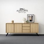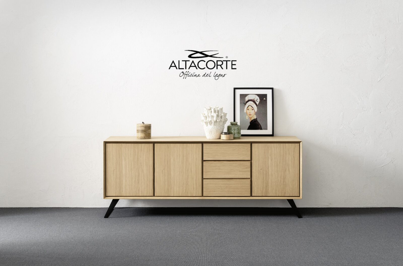 A classic of the Altacorte style. A sideboard with cabinet entirely realized in durmast or walnut wood, created by skilled hands of expert artisans. An essential design, but never trivial, which could be further enriched by the peculiar cement doors.
