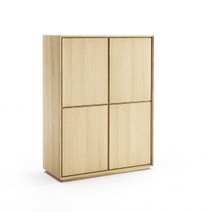 Cabinet available in two different variations: textured or durmast wood. The doors are in durmast wood. Table base in epoxy-painted or acrylic-finish oxidised steel or alternatively in 15-mm thick, transparent, extra-clear Plexiglas.