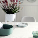 Solid durmast wood structure, solid durmast wood legs 120×60 mm, top 25-mm thick. Brushed surface and top. Water based vinyl adhesives or two-component acryl coat.