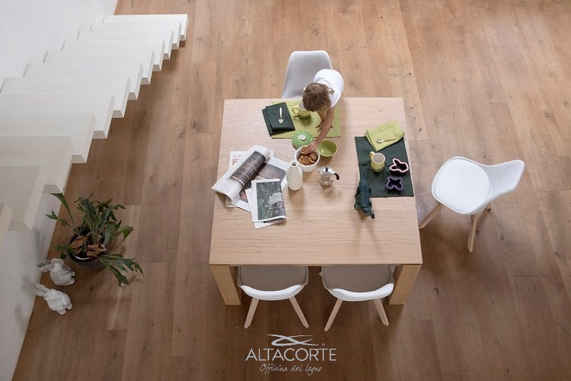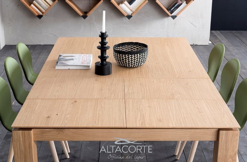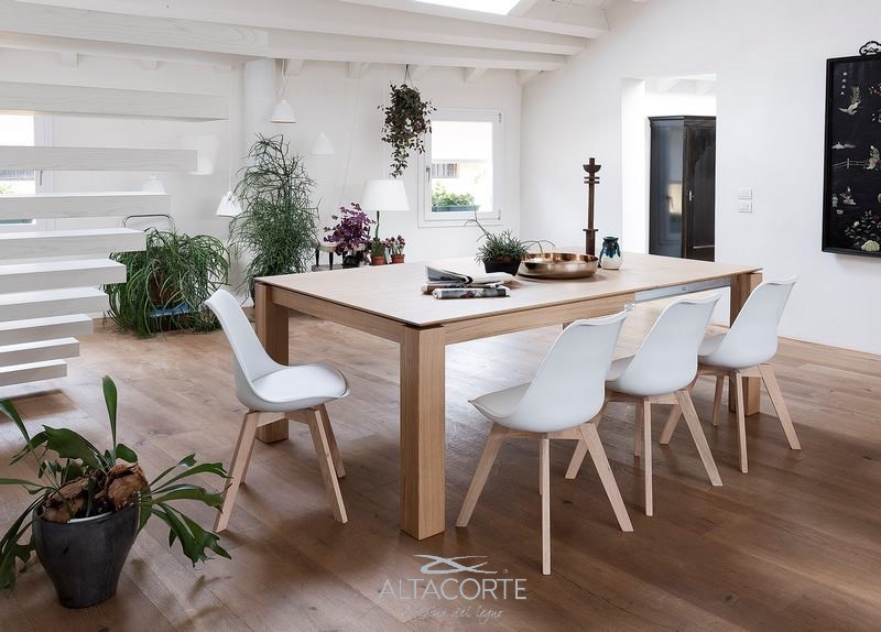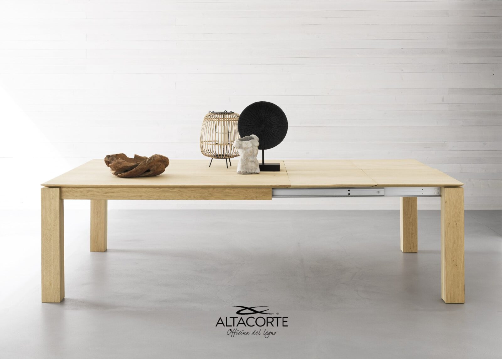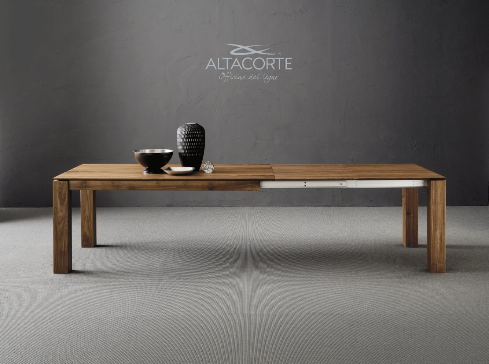 One characteristic of Altacorte style is represented by the Santiago table. Realized in durmast or walnut wood, this table has a strong stage presence thanks to its amazing possibility of extension. A timeless design with an inimitable character realized handmade by skilled artisans, using traditional construction methods. This table will be eternal and appropriate for a wide variety of uses.