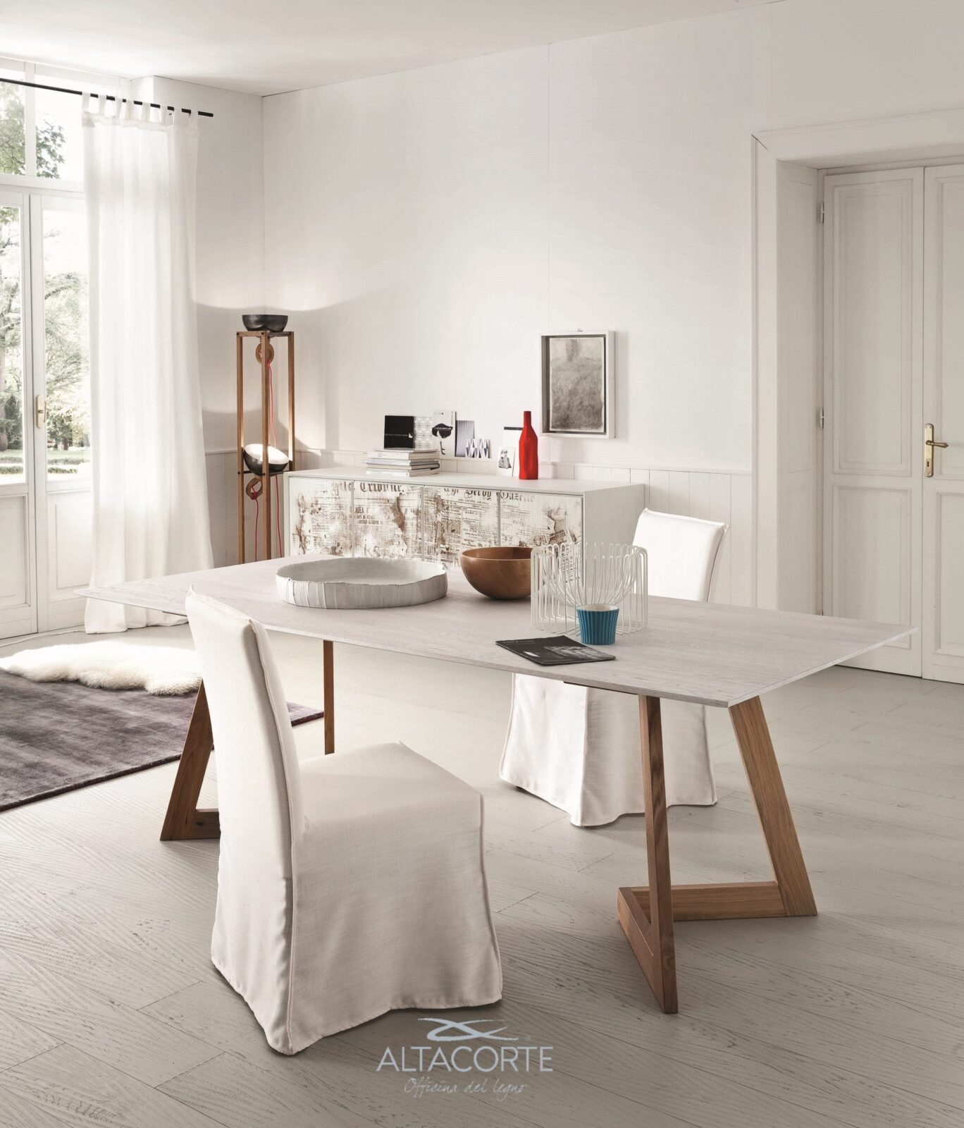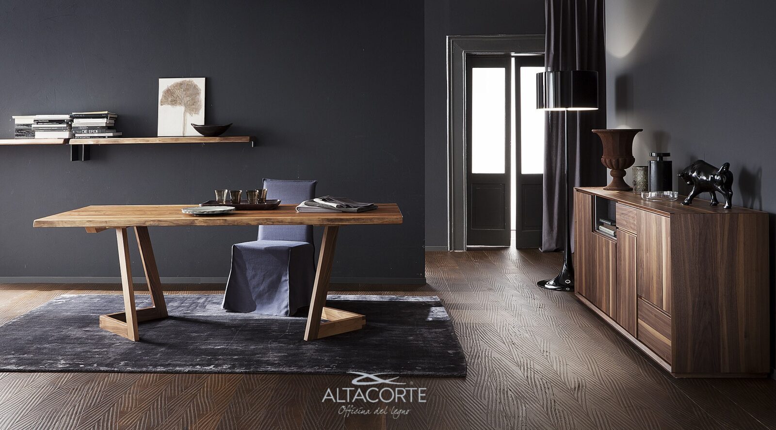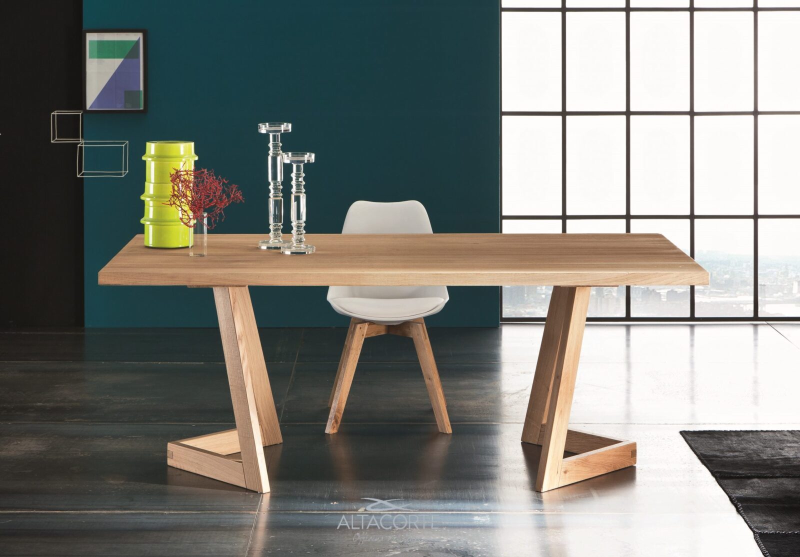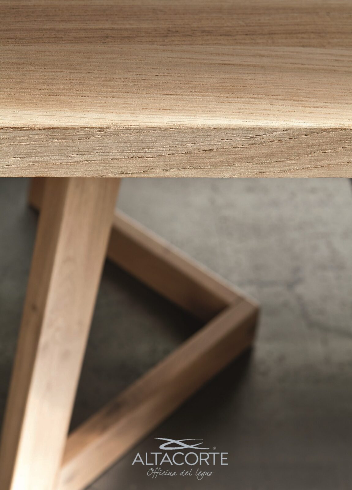 A classic of Altacorte inspired by the basic geometric shapes, it offers synchrony to the rooms, adapting to a wide variety of spaces. Completely realized in durmast or walnut wood, it is the right choice for an eternal table.