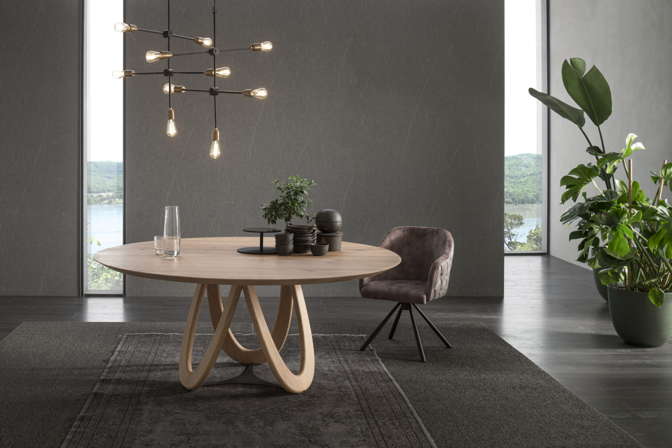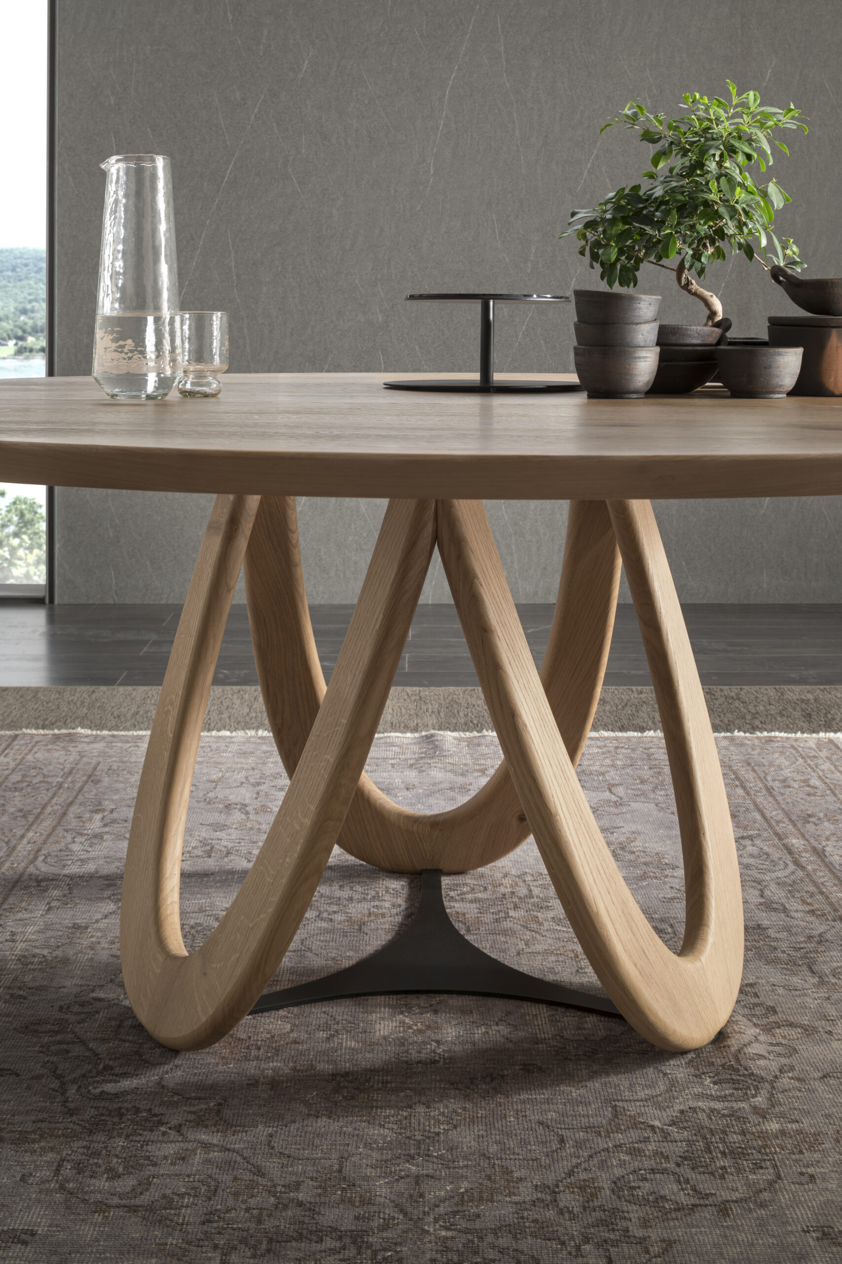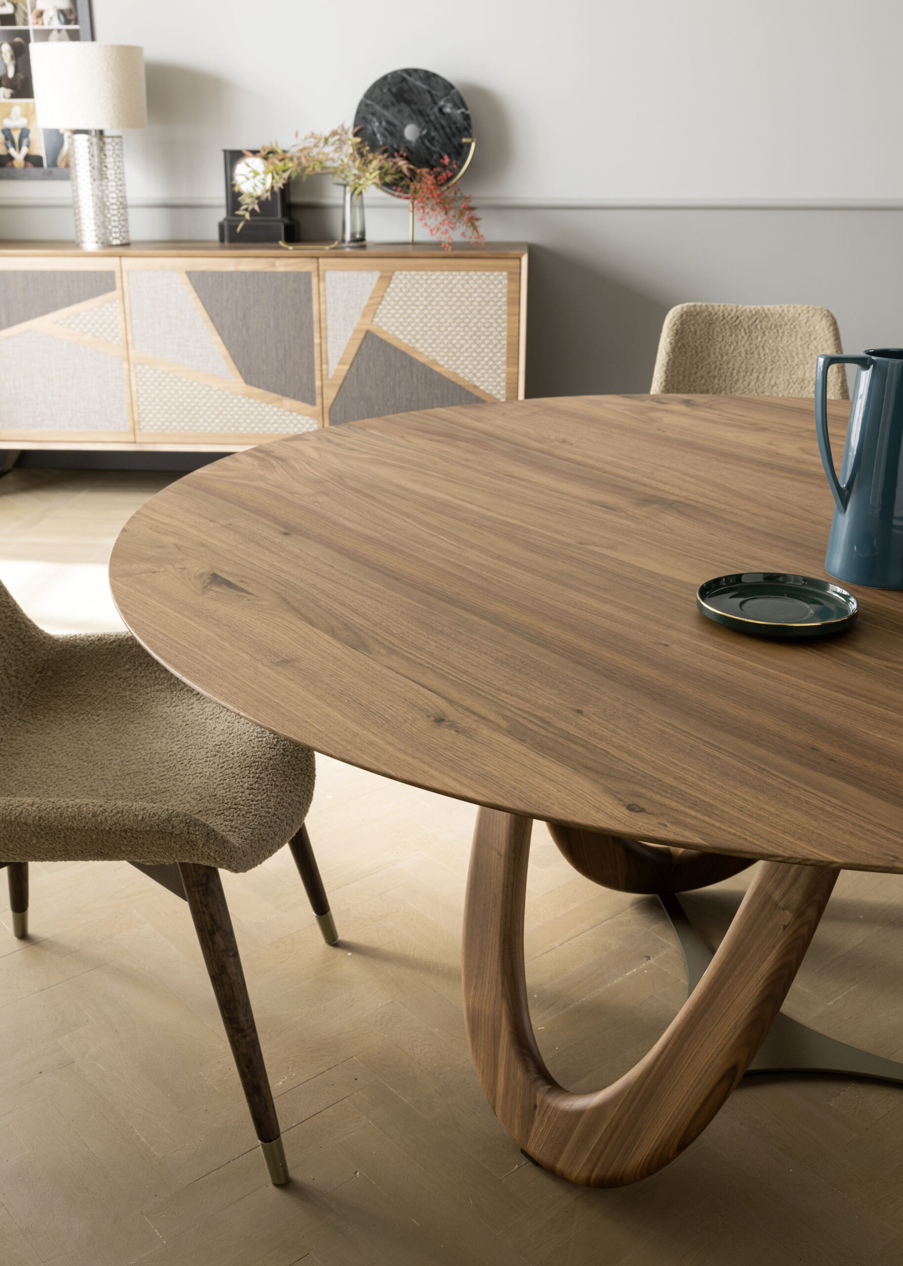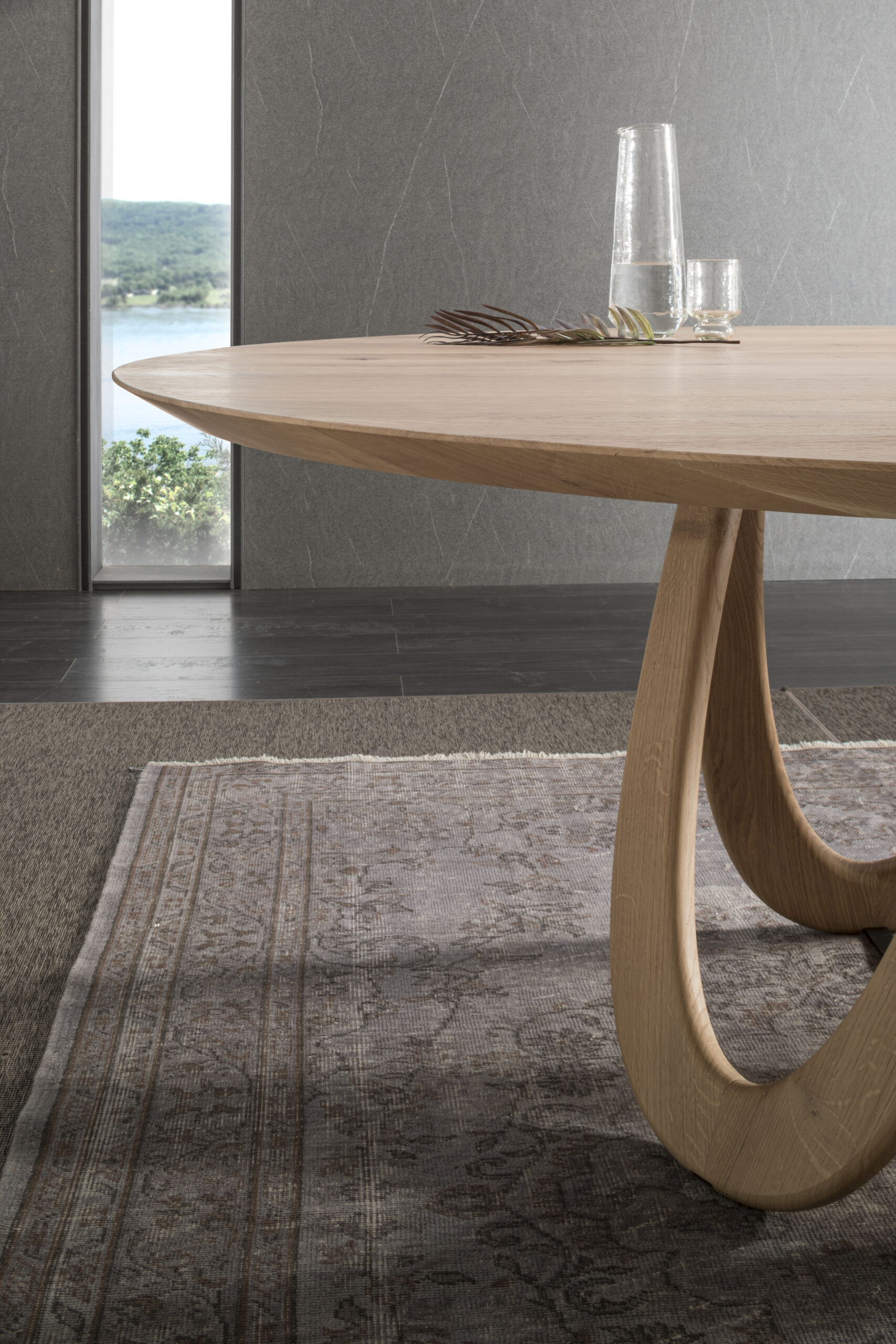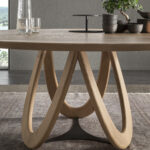 The Venera table is inspired by the phases of the moon through the curvature of the legs. The light passing through the shapes of the wood creates ever-changing plays of shadow. The use of shaded wood and subsequently worked through the expert hands of the polisher creates a unique and unrepeatable effect.